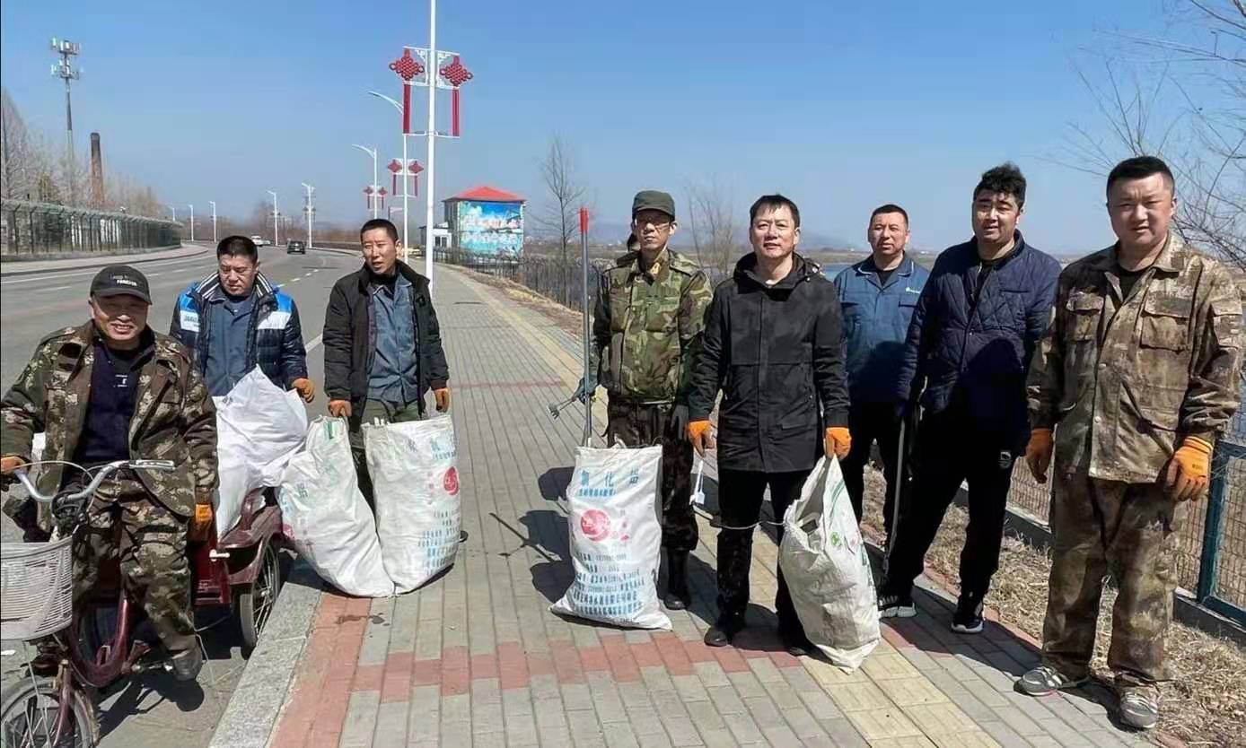 一水廠職工在江邊撿拾垃圾